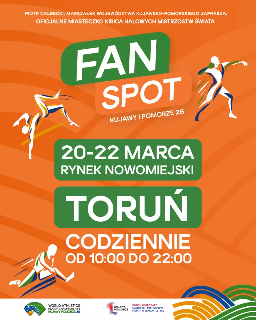 20–22 marca spotkajmy się w Miasteczku Kibica i wspólnie przeżyjmy Halowe Mistrzostwa Świata w Lekkoatletyce Kujawy Pomorze 26 – wydarzenie, którego regionem gospodarzem jest Województwo Kujawsko-Pomorskie, Partner naszego klubu. Bądźcie z nami i poczujcie sportowe emocje na żywo!